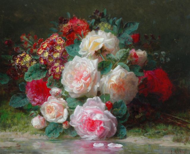 Jean-Baptiste Robie | A bouquet of roses, Öl auf Holz, 41,5 x 53,2 cm, signed l.r.