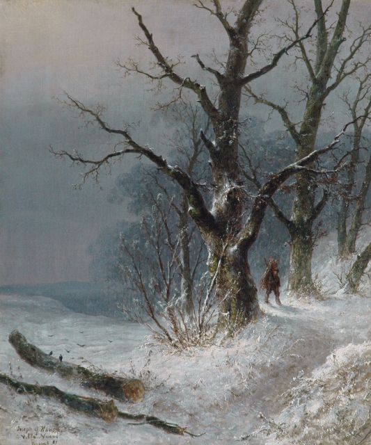 Jan Jacob Spohler | Figures with a sledge on a snowy path, Öl auf Leinwand, 38,6 x 30,7 cm