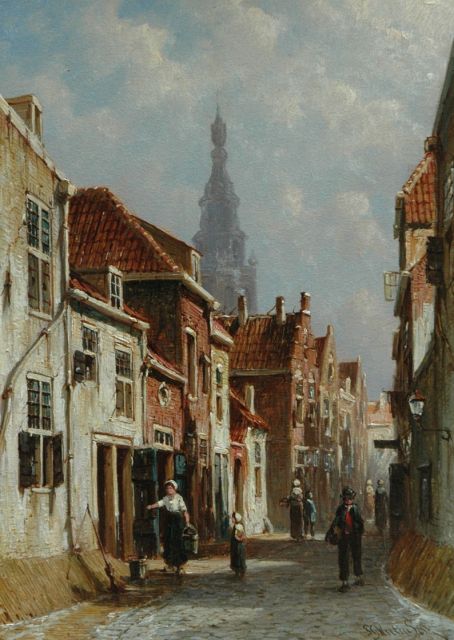 Petrus Gerardus Vertin | A sunny Dutch town with figures, Öl auf Holz, 36,7 x 30,4 cm, signed l.l. und executed ca. 1860-1870