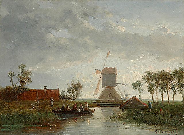 Piet Schipperus | Sowing mills 'De Vlaggeman' and 'Het Haantje' on the Schie near Rotterdam, Öl auf Holz, 29,7 x 23,7 cm, signed l.l.