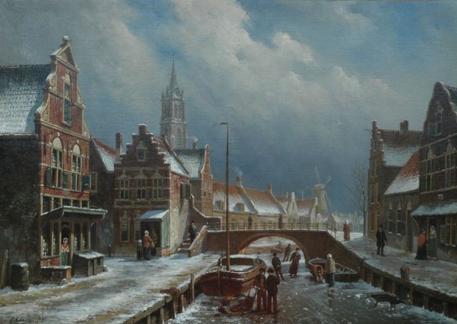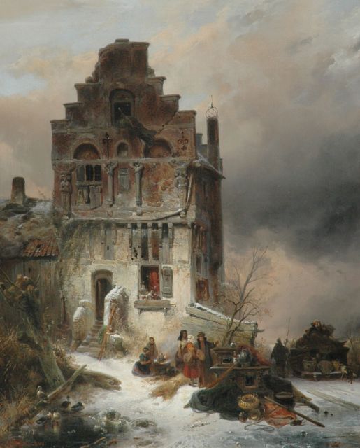 John Franciscus Hoppenbrouwers | A winter evening, Öl auf Holz, 25,6 x 36,5 cm, signed l.r. und dated 1865