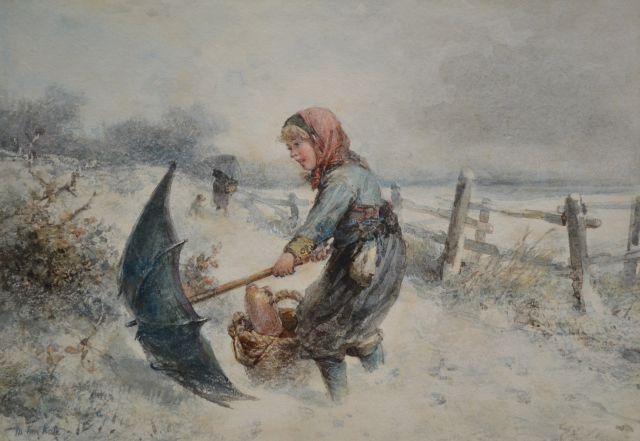Charles Leickert | Aufkommender Schneesturm, Öl auf Holz, 16,4 x 26,1 cm, Unterzeichnet r.u.