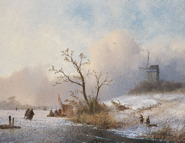 Charles Leickert | Winter landscape with skaters on a frozen river, Öl auf Holz, 35,0 x 54,4 cm, signed l.r.