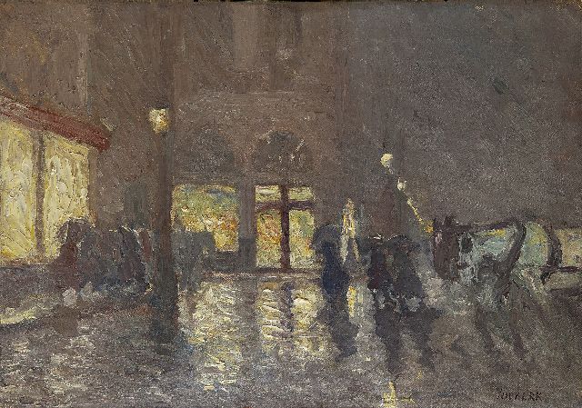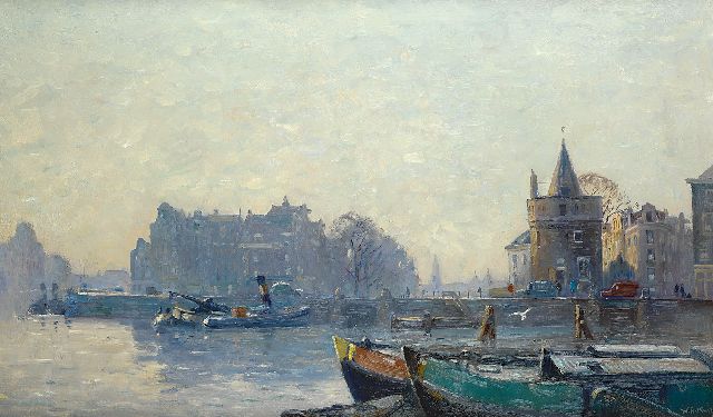 Prins Hendrikkade, Amsterdam, mit Strohmarkt und der Ronde Lutherse Kerk, Öl auf Leinwand 59,3 x 72,8 cm, Unterzeichnet u.r. und datiert 1931