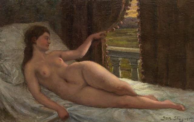 Maze P.L.  | Ruhender weiblicher Akt, Öl auf Leinwand  auf Holzfaser 27,0 x 34,8 cm Maze P.L.