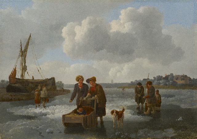 Eisspaß auf gefrorener Wasserweg, Öl auf Leinwand auf Holz 33,5 x 46,2 cm, Unterzeichnet l.u.