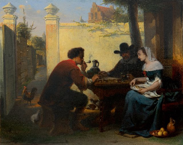 Die Erfrischung, Öl auf Leinwand 40,5 x 60,3 cm, Unterzeichnet u.l. und zu datieren um 1850
