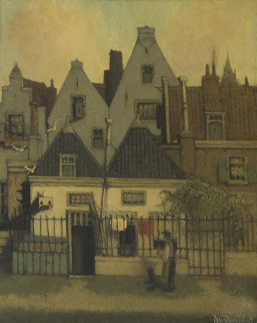 Ansicht auf den Buitenhof zu Haag, gesehen Richtung Stadhouderlijk Kwartier, Öl auf Holz 18,6 x 25,2 cm, Unterzeichnet l.u. und datiert '62