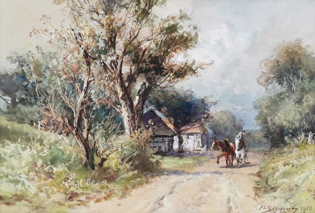 Muschelfischer auf seinem Karren, Öl auf Leinwand 66,2 x 96,8 cm, Unterzeichnet r.u.