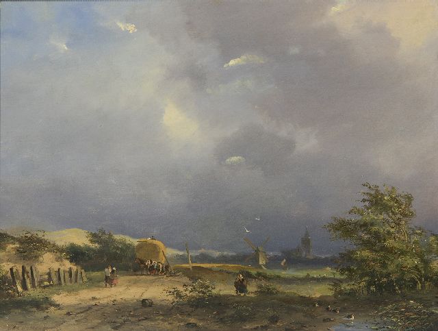 Adrianus David Hilleveld | Landschaft mit Landleuten und Heuwagen, Öl auf Holz, 24,6 x 32,0 cm, Unterzeichnet u.l.