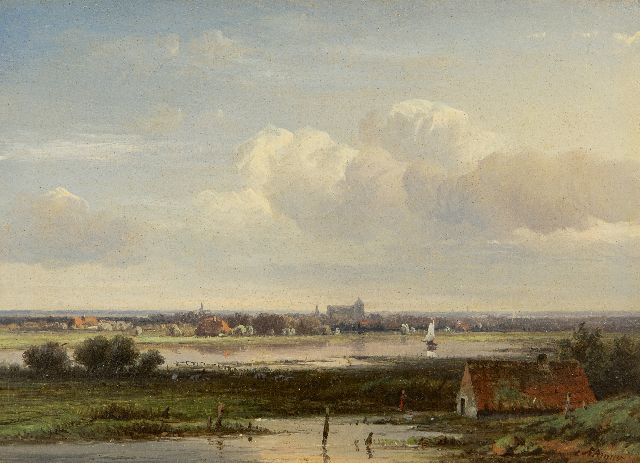 Lodewijk Johannes Kleijn | Blick auf den Rhein bei Arnhem, Öl auf Holz, 22,0 x 30,1 cm, Unterzeichnet u.l.