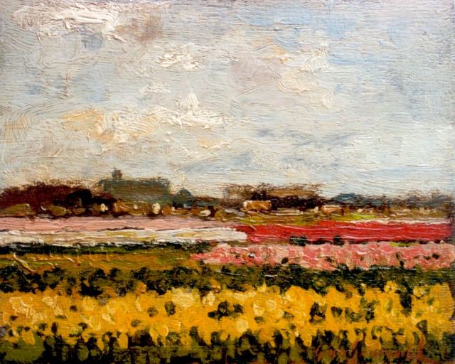 Willem Abraham Wassenaar | Flowering bulb fields, Öl auf Holz, 25,1 x 40,0 cm, signed l.l.