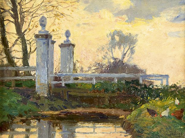 Ben Viegers | The entry of a country estate with scratching hens, Öl auf Leinwand, 22,0 x 30,0 cm, signed l.r.