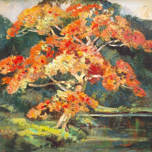 Ernest Dezentjé | Flowering tree, Öl auf Holz, 48,1 x 47,9 cm, signed l.r.