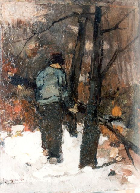 Frans Langeveld | Gathering wood, Öl auf Holz, 18,7 x 13,8 cm, signed l.l.