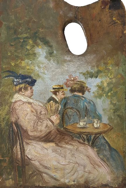 Figuren auf einer Terrasse, auf der Palette gemalt