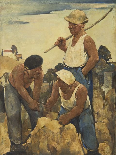 Willem van den Berg | Steinmetzen, Öl auf Malereifaser, 39,9 x 30,0 cm, Unterzeichnet u.r. mit Initial