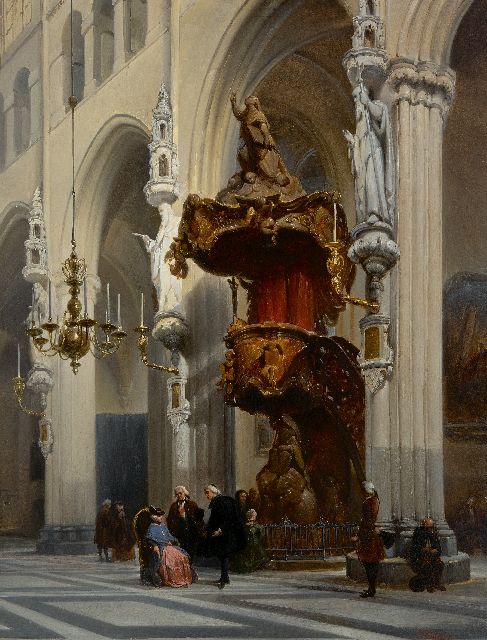 Wenn die Malerei des 19. Jahrhunderts eine "Wiederbelebung" der Kunst erlebt, die das Goldene Zeitalter hervorgebracht hat, dürfen auch die Innenräume nicht fehlen. Das Innere der Kirche ist beliebt - insbesondere das der protestantischen Kirchen, nachdem Wilhelm I. die reformierte Kirche 1816 offiziell als Staatskirche anerkannte. Und im 17. Jahrhundert war ein Kircheninneres hauptsächlich eine perspektivische Studie (Saenredam), in der Romantik und im frühen Impressionismus ist die Erfahrung zentraler. Schenkel und Bosboom malen das goldene Licht, das Summen während eines Gottesdienstes und die Stille einiger Gläubiger, die den Kirchenraum besuchen.