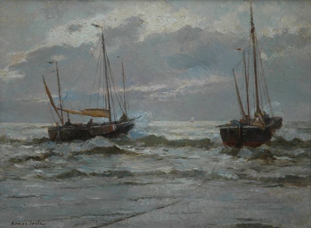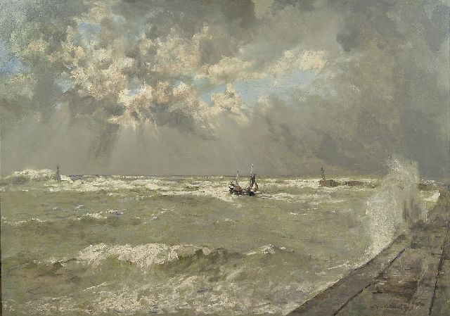 Johan Hendrik van Mastenbroek | A lugger in choppy waters, Scheveningen harbour, Öl auf Leinwand, 70,3 x 100,1 cm, signed l.r. und dated 1936