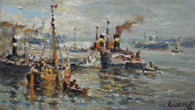 Evert Moll | A harbour view with tugs, Öl auf Leinwand, 20,5 x 35,2 cm, signed l.r.