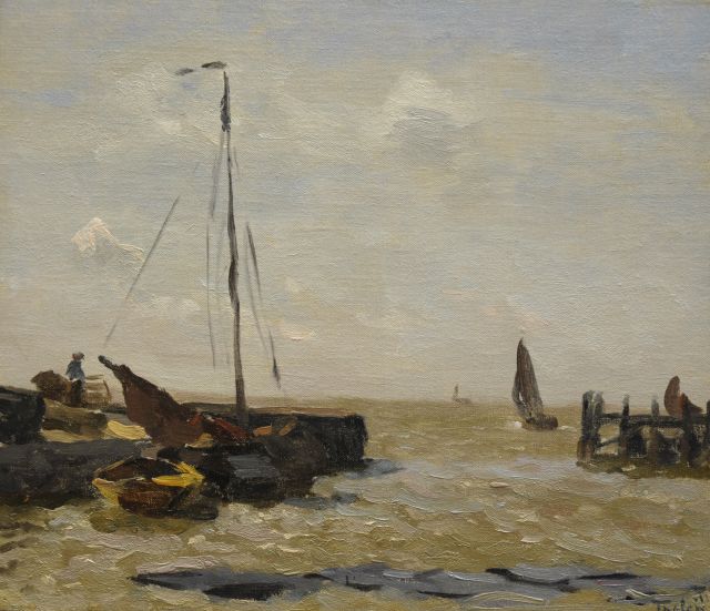 Willem Bastiaan Tholen | Harbour along the Zuiderzee, Öl auf Leinwand auf Holz, 27,5 x 32,1 cm, signed l.r.