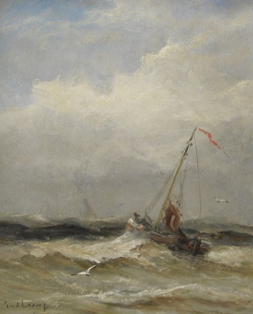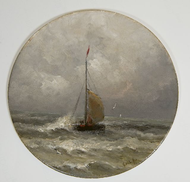 Gerard van der Laan | Fishing boat at sea, Öl auf Porzellan, 28,3 x 28,3 cm, signed with initials l.r.