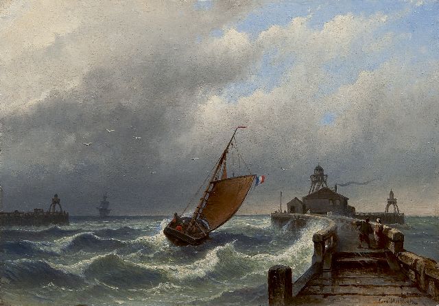 Eduard Alexander Hilverdink | Ships sailing off a jetty, Öl auf Holz, 24,5 x 34,8 cm, signed l.r.