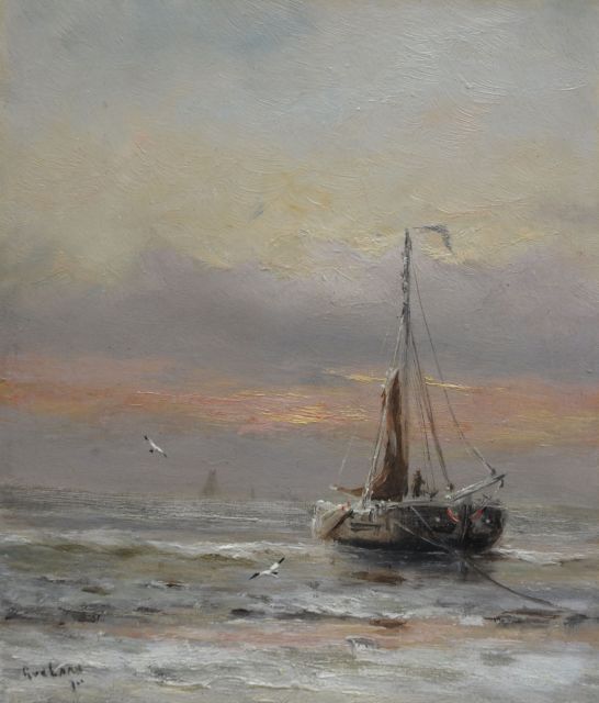 German Grobe | Fishing boats setting sail at sunset, Öl auf Leinwand, 60,0 x 80,3 cm, signed l.l.