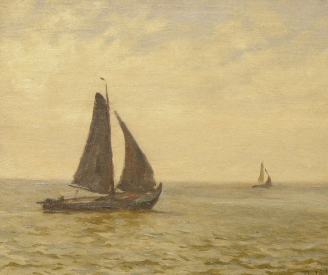 Willem Bastiaan Tholen | Fishing boats at sea, Öl auf Leinwand auf Holz, 31,3 x 37,0 cm, signed l.r. und dated '15