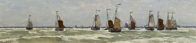 Willem Wenckebach | Fishingboats setting sail, Öl auf Holz, 22,7 x 76,8 cm, signed l.r. with initials
