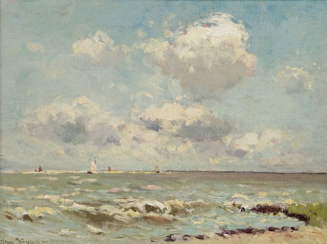 Willem Weissenbruch | Ships sailing, Öl auf Leinwand  auf Holzfaser, 23,3 x 32,0 cm, signed l.l.