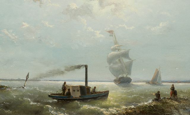Johannes Hermanus Koekkoek | Sailing ships off the coast of Zeeland, Öl auf Holz, 36,0 x 47,0 cm, signed l.c.