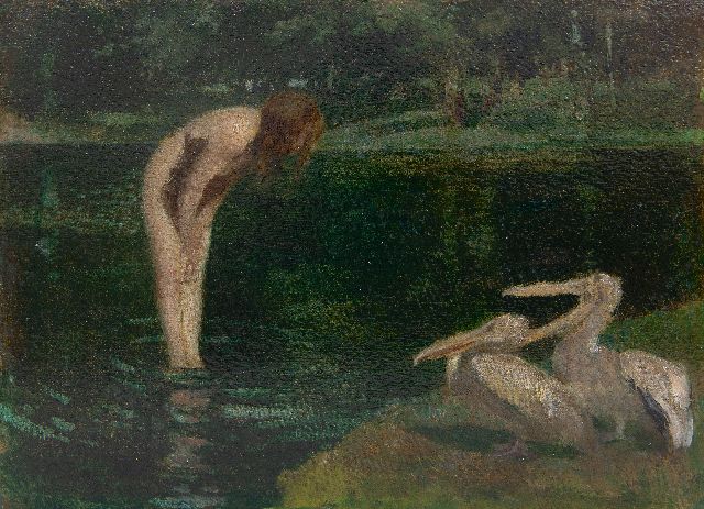 Walter Geffcken | Begegnung beim See, Öl auf Holzfaser auf Holz, 20,9 x 28,1 cm, Unterzeichnet u.l.