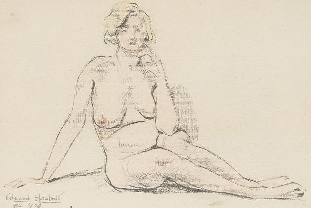Eduard Houbolt | Akt, sitzend, Bleistift und Kreide auf Papier, 11,5 x 16,8 cm, Unterzeichnet u.l. und datiert '30