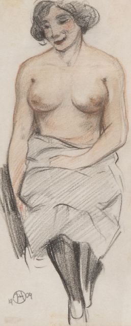 Eduard Houbolt | Akt, sitzend, Kreide auf Papier, 19,8 x 8,2 cm, Unterzeichnet u.l. mit Monogramm und datiert 1909