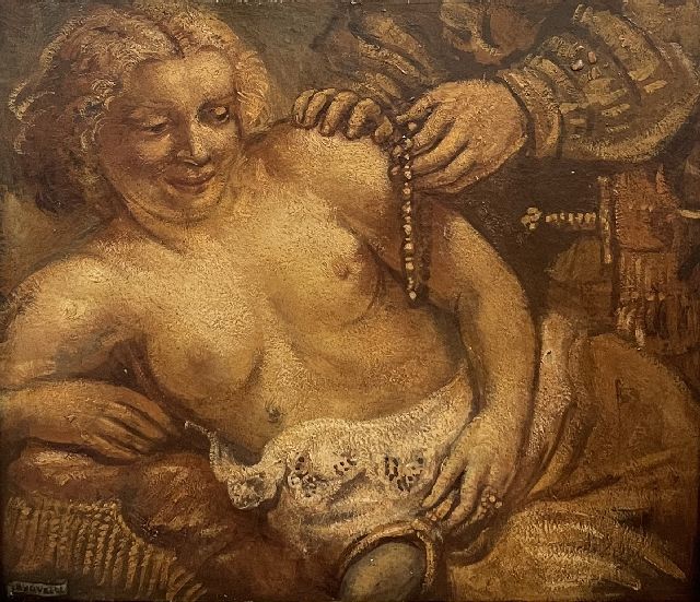 Henri van de Velde | Ein verlockendes Angebot; verso: Mann mit Kreuz, Öl auf Holzfaser, 30,1 x 35,4 cm, Unterzeichnet u.l.