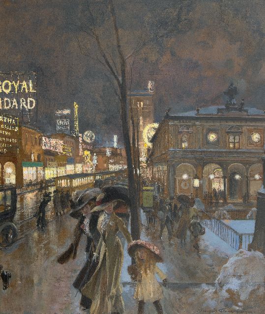 Abendliche Stadtansicht im Schnee (Herald Square und New York Herald Building)