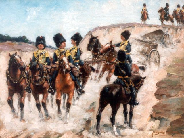 Jacob Hendrik Geerlings | Cavalrists, Öl auf Leinwand, 35,5 x 47,5 cm, signed l.r.