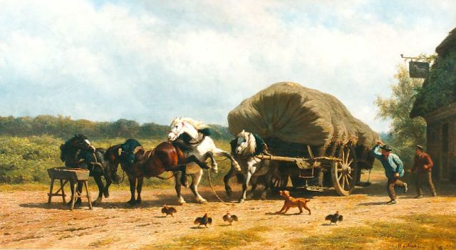 Willem Carel Nakken | Feeding the horses, Öl auf Leinwand, 45,0 x 80,0 cm, signed l.r.