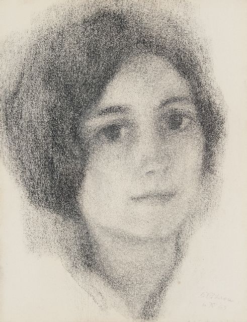 Paul Citroen | Porträt einer jungen Frau, Schwarze Kreide auf Papier, 64,9 x 45,9 cm, Unterzeichnet u.r. und datiert 6 IV '63