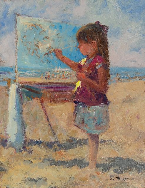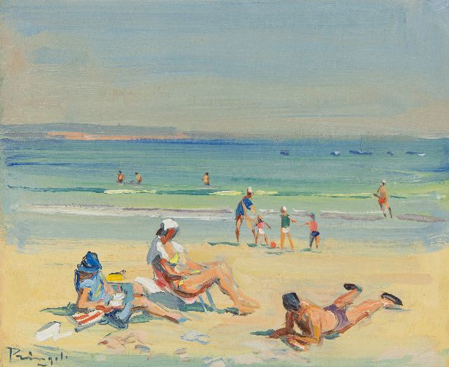 Jan Zoetelief Tromp | Spielen am Strand, Öl auf Leinwand, 40,5 x 52,9 cm, Unterzeichnet u.r. und auf den Keilrahmen