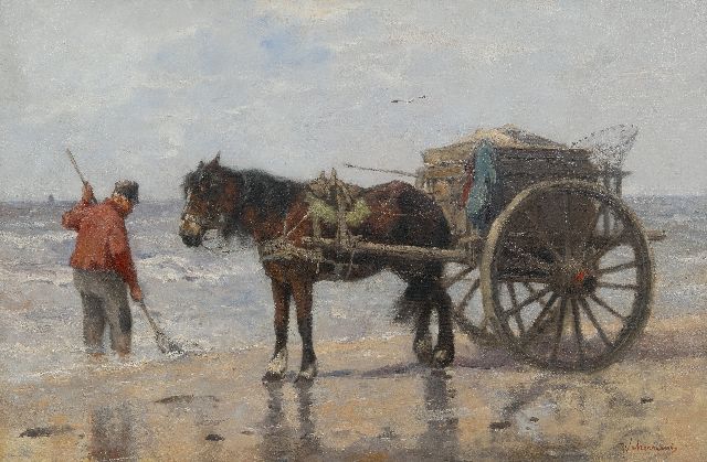 Jan Zoetelief Tromp | Muschelfischer auf seinem Karren, Öl auf Leinwand, 66,2 x 96,8 cm, Unterzeichnet r.u.