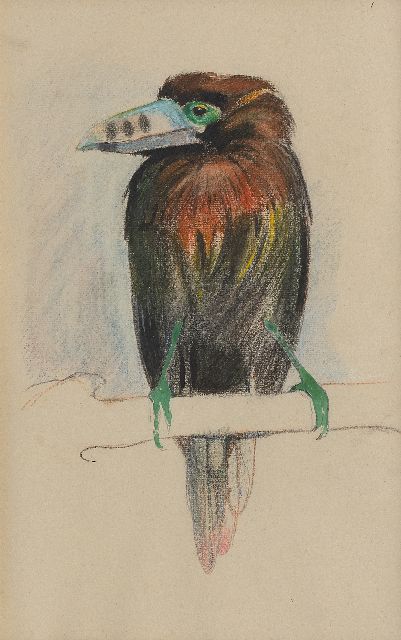 Greta Bruigom | Ein junger Nashornvogel, Aquarell auf Papier, 32,4 x 35,5 cm, Unterzeichnet l.u. mit Namenstempel