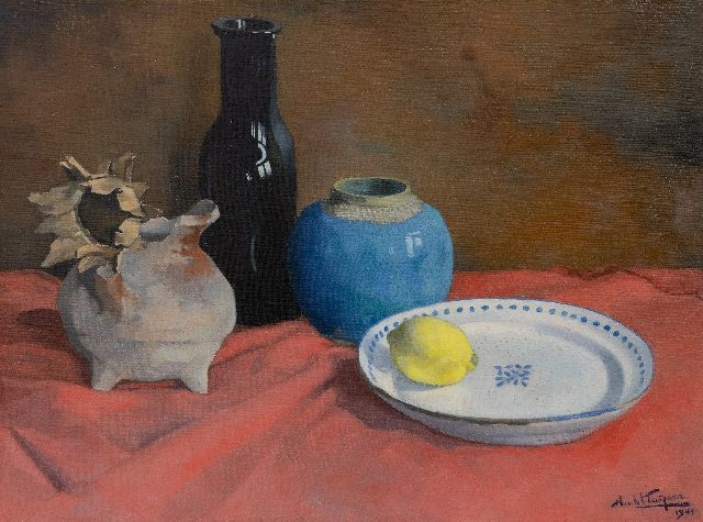 Stillleben mit Römer, Steinkrug und Teller mit Zitronen